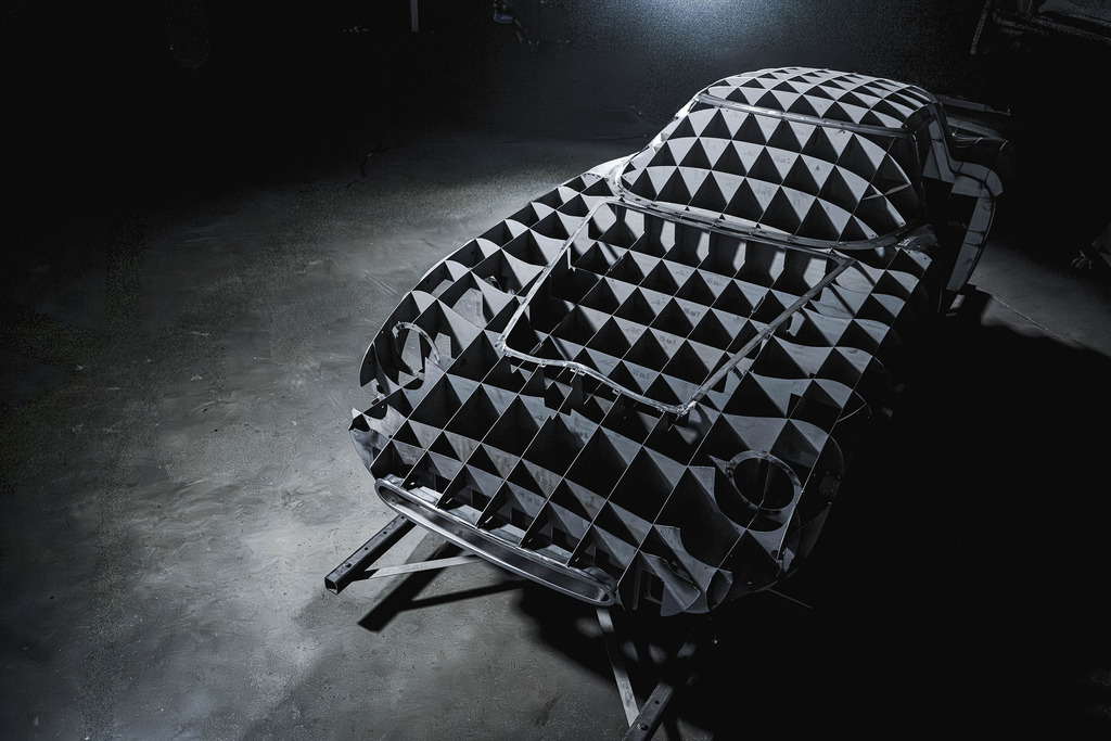 For the 250 GTO Revival, every car begins with genuine Ferrari components: the chassis rails and V12 engine recovered from a 330, then re-engineered to the 1964 specifications.